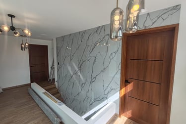 En este proyecto se realizó la colocación de placas de mármol en muros, así como la colocación de piso laminado. Este proceso requirió una cuidadosa planificación y ejecución, asegurando que cada placa se colocara de manera precisa para lograr un acabado estético y duradero. Además, se llevó a cabo un análisis detallado de los materiales, garantizando la mejor calidad y la adecuación de los mismos para el entorno específico donde se estaban instalando. El equipo de profesionales involucrados en este proyecto mostró un compromiso excepcional, y su experiencia contribuyó significativamente al éxito de la implementación de estas características de diseño interior.