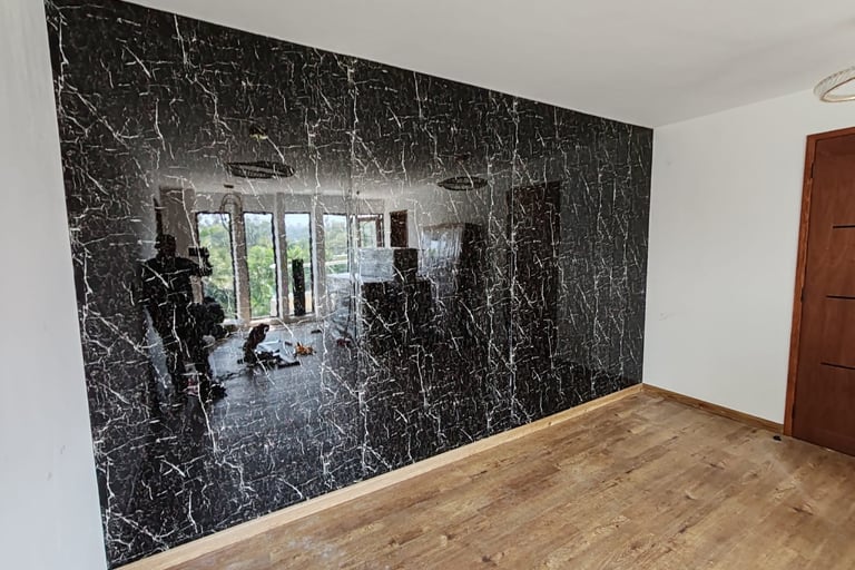 Colocación de placas tipo mármol negro